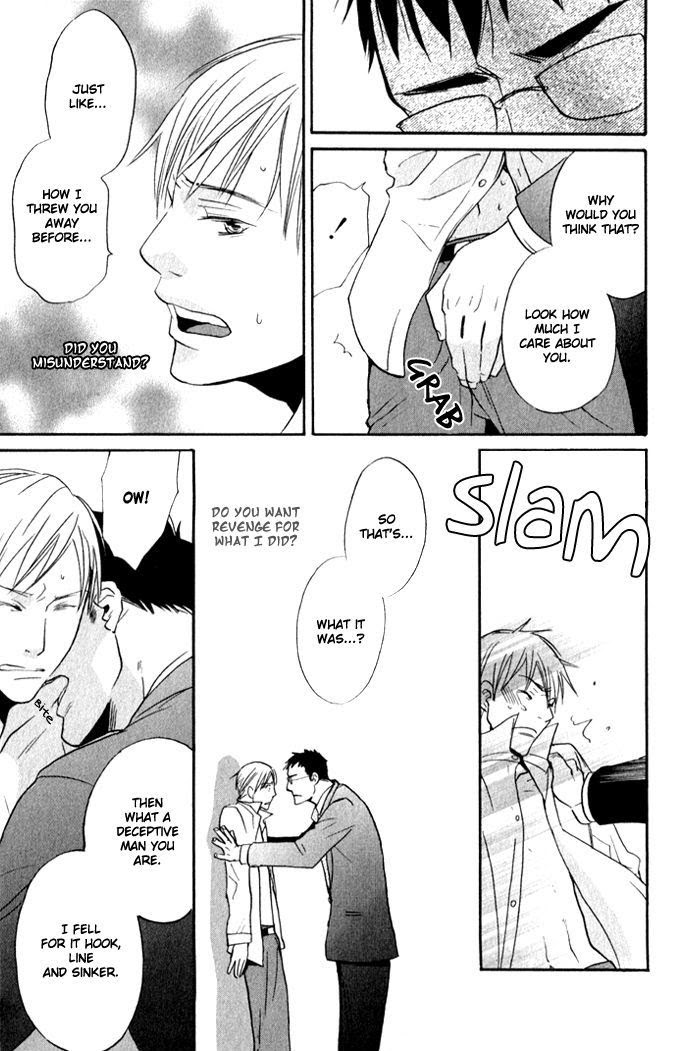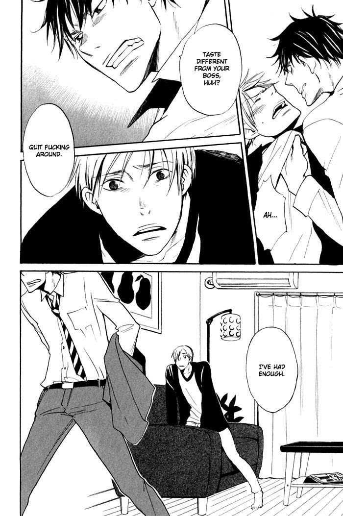Kuniyoshi is high-strung and ambitious. Hirayama... is not. They worked together until Hirayama suddenly quit. That's when Kuniyoshi realized how much Hirayama meant to him. But it's always Kuniyoshi pushing their relationship and he doesn't know what Hirayama really thinks. (Source: MU)