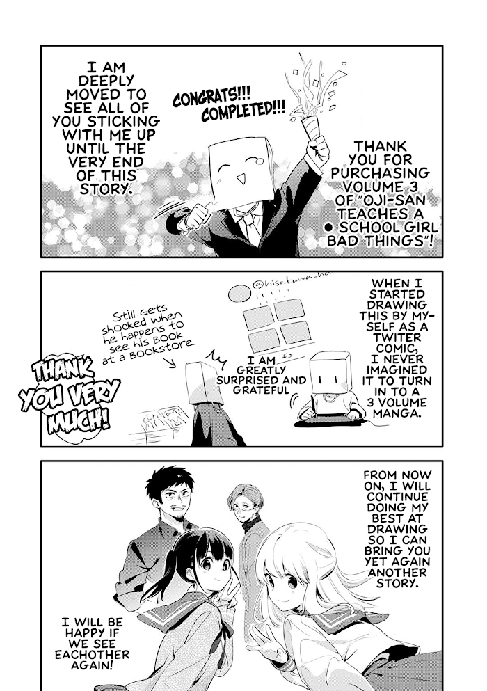 Oji-san ga Joshi●sei ni Warui Koto wo Oshieru hanashi manga summary: "I'll teach you what's bad." As a high schooler, Ayumu's at a sensitive period in her life. She ends up being educated on adult matters by a bearded old man wearing a black t-shirt