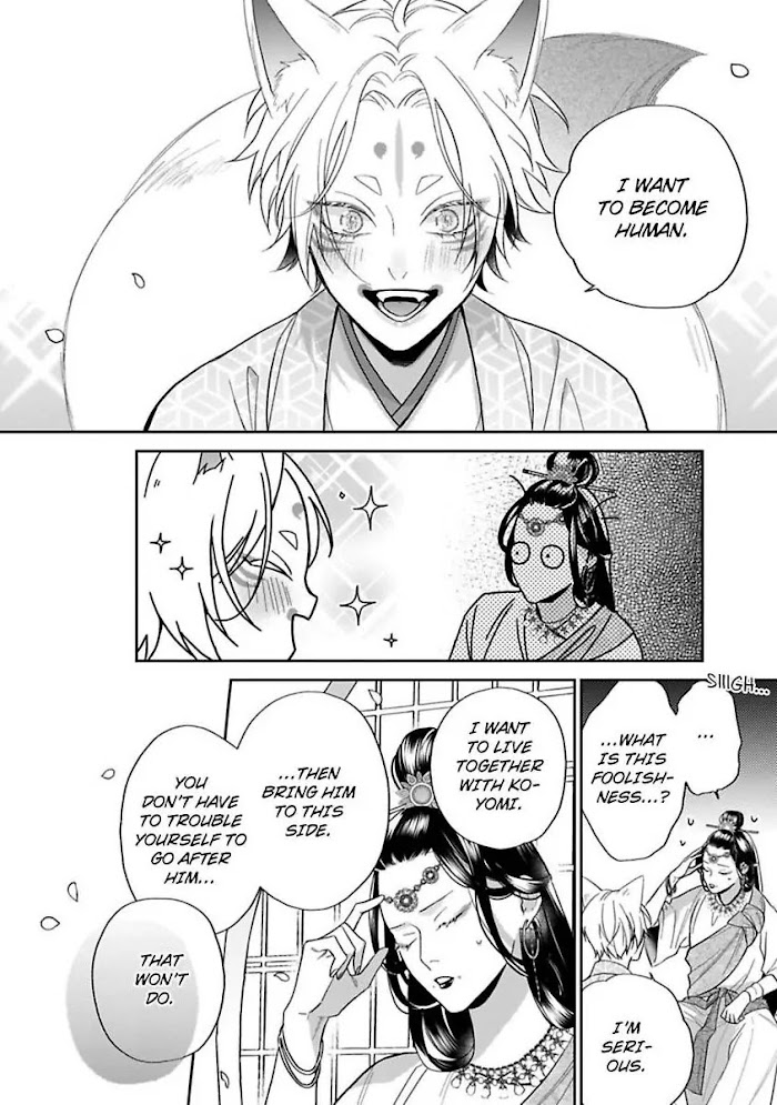 Koyomi's parents passed away, his job is draining, and he's endured a life full of hardship. He lives his days apathetically, with no hope for a brighter tomorrow.One day, his friends invite him to visit a shrine known for matchmaking. He prays for a life where there's someone he can come home to, with whom he can happily eat together.When Koyomi returns home that night, mundane wish still on his mind, he receives an unexpected visitor: a fox who can make his wishes come true! And so begins the loving and happy cohabitation story between a corporate slave and a gorgeous, adorable fox?