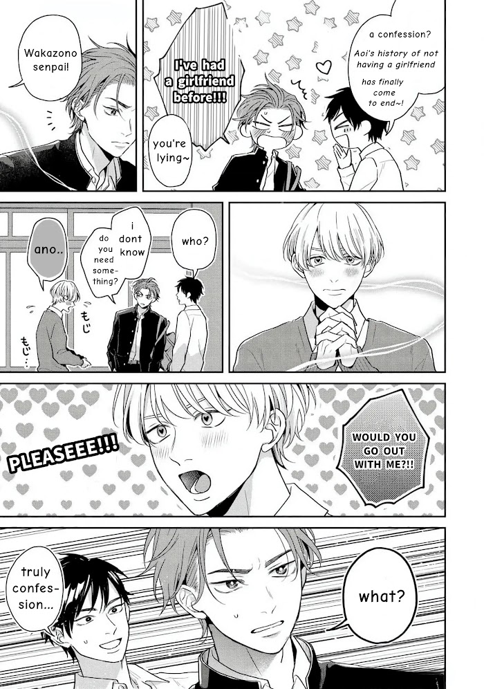 "A saint? But I'm a man!“ On his 17th birthday, Aoi suddenly being called a ‘saint’ by a handsome man, Joichiro, a self-proclaimed ”knight". According to Joichiro, the saint, who can bring good fortune if he is in a relationship, emits a pheromone that attracts greedy men, and Aoi is in danger. Aoi turns away because he thinks it smells too fishy, but on his wayback from the convenience store, Joichiro saves him from an attack by a junior who was attracted to the pheromone. Aoi's heart begins to be drawn to Joichiro, whotrusts him no matter what, and always rushes to him every time he's in trouble.