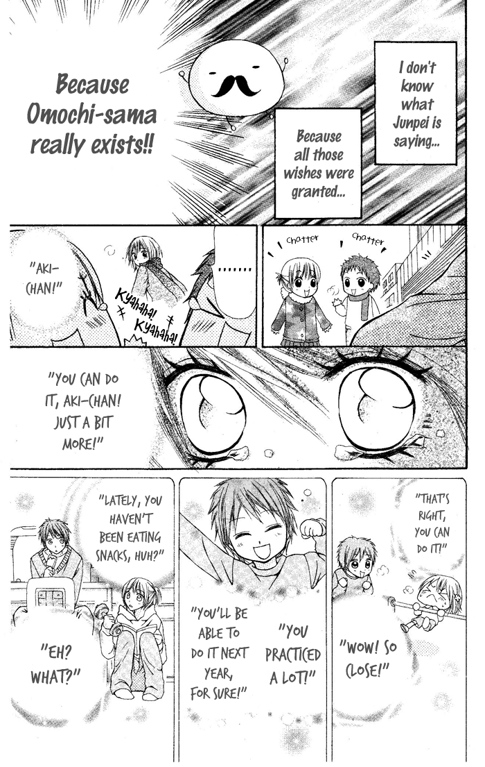 When Akiko was a child, on the first day of the new year, a rice cake suddenly came to life and told Akiko that it will grant a wish that she has. It's always been like that year after year, until one year a cat stole the rice cake that she was supposed to eat. Her family didn't have anymore left, and stores were sold out. She tries very hard to find a rice cake, but why is this? What is her wish that she wants granted so badly? (Source: Intercross Scanlations)