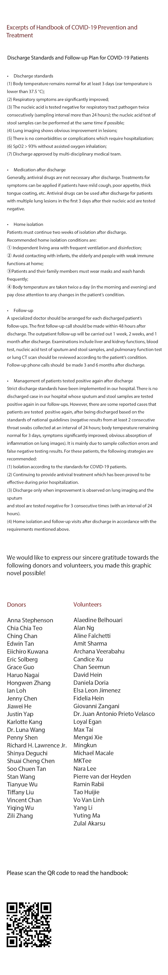 In this unprecedented situation, we cannot resort to the usual tools and must be creative in our response to address the crisis. Gen Z Group decided to adapt the Handbook of COVID-19 Prevention and Treatment into a five-episode graphic novel. We hope to share the hard-earned lessons of front line Chinese doctors so that the rest of the world can learn from their mistakes, pick up their best practices, and save previous lives. For the public, a lot of the current measures are focused on educating the public on prevention measures - i.e. wash hands and keep a social distance, but there is not enough effort in telling them WHY they need to do it. People will only develop the sense of responsibility if they know how contagious the disease really is and how dangerous it is for the healthcare workers to work on the front line by seeing (graphically) the tedious steps of donning and removal of PPE; they will also only understand why it is not just a seasonal flu when they see the diagnosis (i.e. lung CT scans) and the treatment (oxygen therapy, intubation, ECMO, etc).