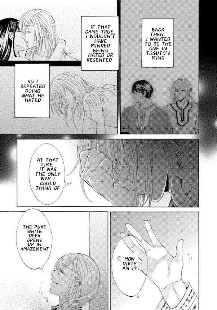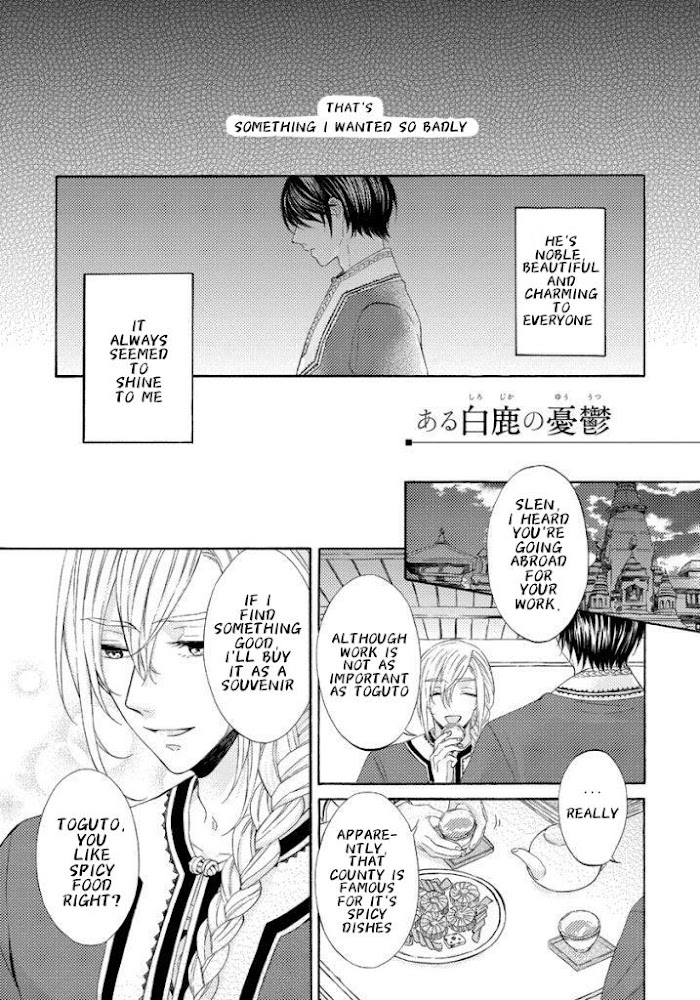Ookami wa Hana no Kaori manga summary: A long time ago, a wolf and a white doe fell in love and mated with each other. A white-haired child who inherits this blood is known as a "white hart" and is duty-bound to become the mate of the royal family. Ilwes, a soldier who protects the capital, rescues a golden-eyed white hart that was confined in a village. He names the white hart, who is thin and incapable of talking, Alta (golden one). Little by little, the two of them communicate with each other through their hearts. He wishes to protect this innocent white hart, whose eyes shine with the overflowing beauty of the outside world. However, Alta is fated to marry into the royal family.