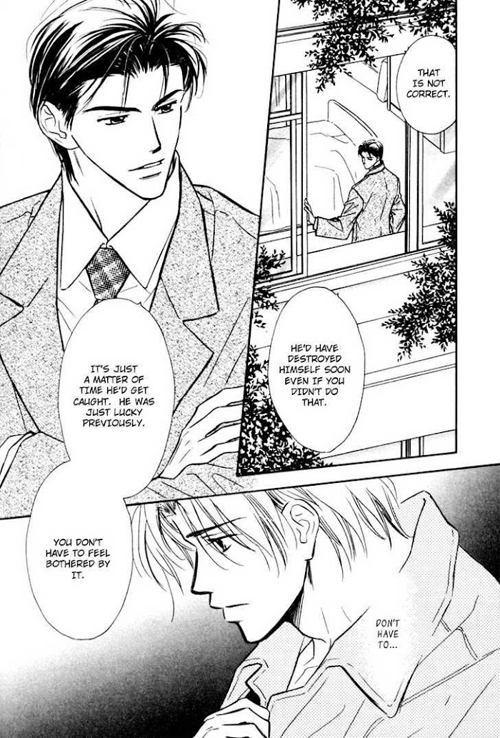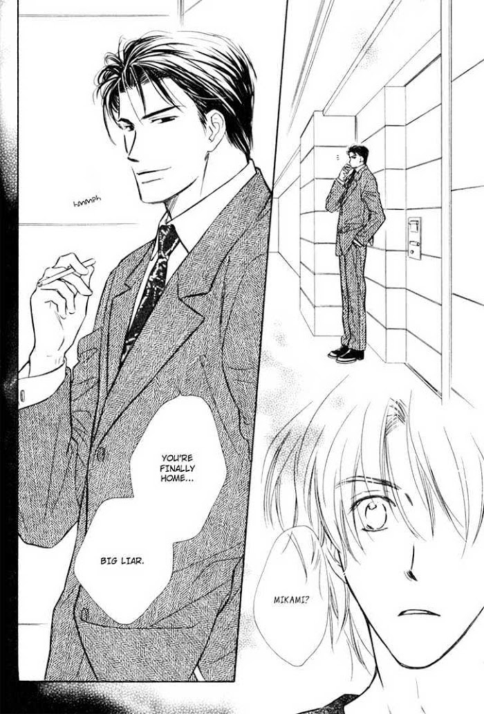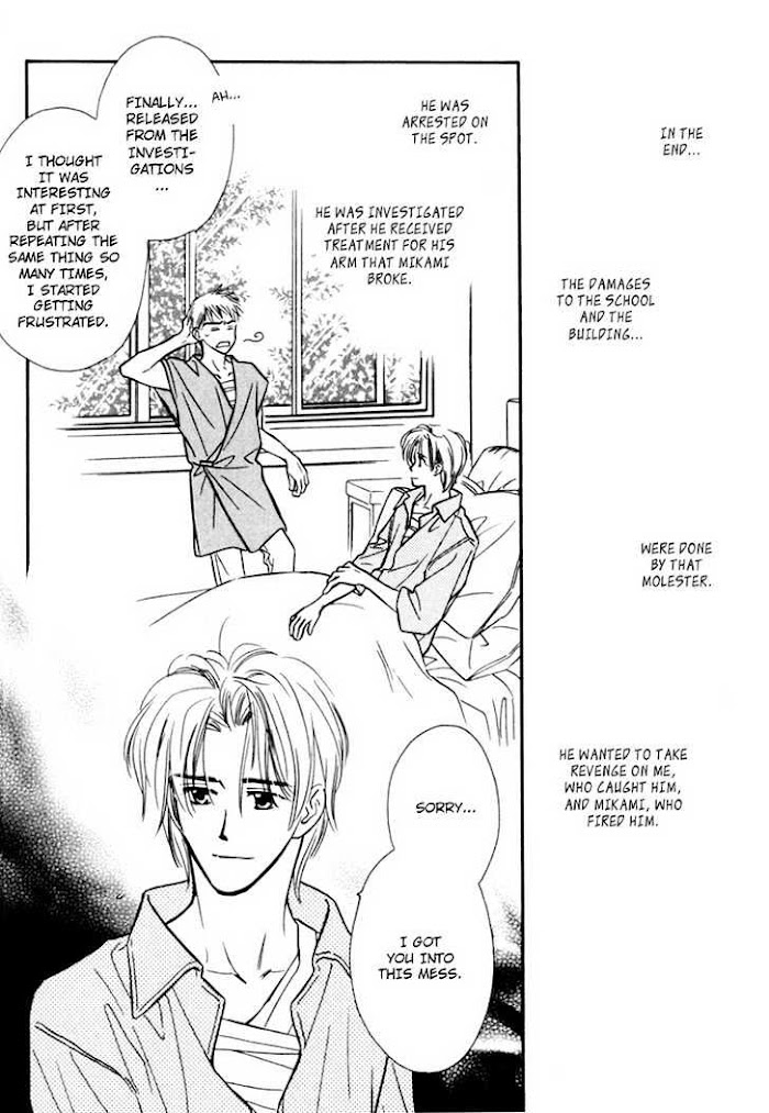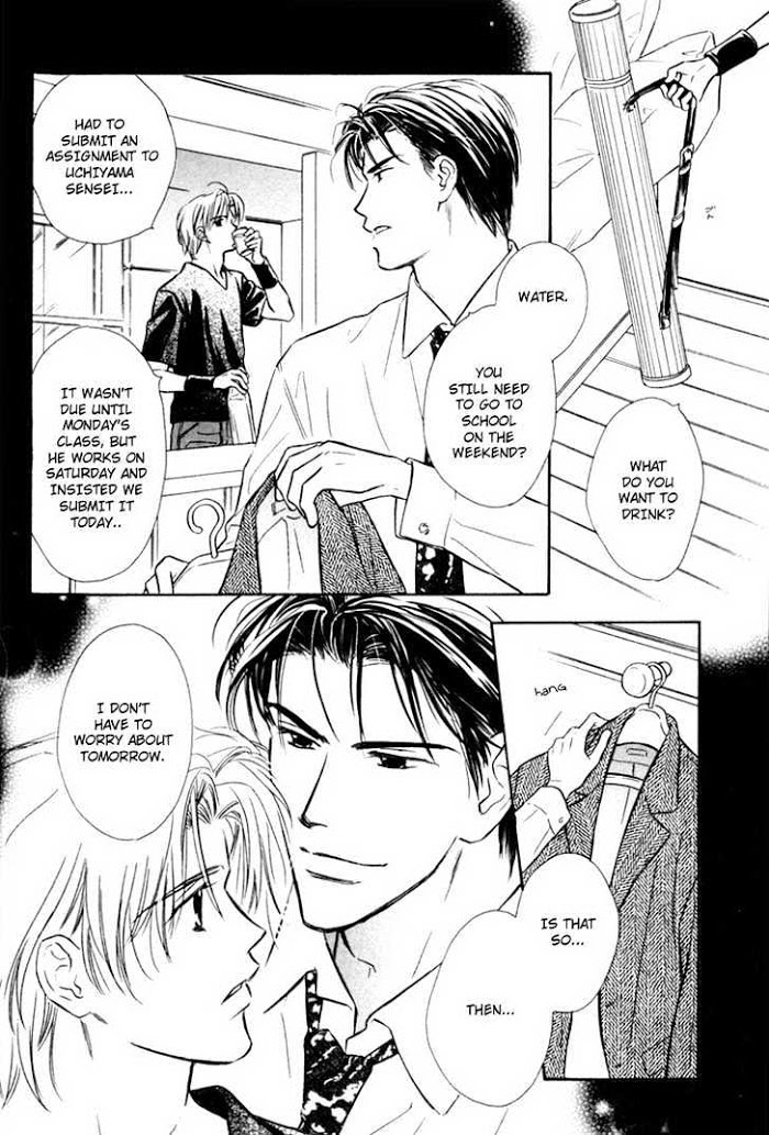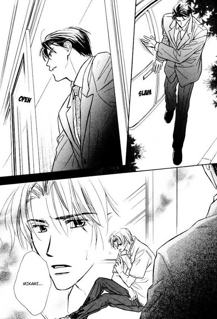 From mangaupdates.com: Ch 1-3) Love is in the air for another Kunisaki brother as the school carnival approaches. Rehearsals have begun, and Satsuki is hungry. Jumping out of the window may be one way to get away, but his ever-vigilant watchdog, Kunisaki Yamaji, is soon there to bring him back. As rehearsals for the school carnival continue, someone seems to be out to sabotage the play and Satsuki. Can Yamaji protect his precious Satsuki? Does Satsuki really need protecting? Ch 4) A one-shot that follows lovers Ginka and Kakei-senpai. Ginka and Kakei-senpai are both looking forward to their planned overnight trip during Golden Week, but Kakei-senpai doesn't show up. No phone call, no message...Kakei-senpai is gone. What happened? What is Ginka supposed to do? Has this little uke been abandoned? Ch 5-6) Mikami Yuusuke (from Karamete de Kudoite and Aisareru Hito e Tsugu) seems to be quite the gentleman, using his wealth and power to take care of many unfortunate men and women. Ichihashi Rui, a student in Mikami's school of design, is one of those unfortunates. Now someone seems to be after Mikami, setting fire to his buildings and leaving "gifts" in Rui's mailbox. Will Mikami be able to save Rui? Or will it be Rui who saves Mikami?