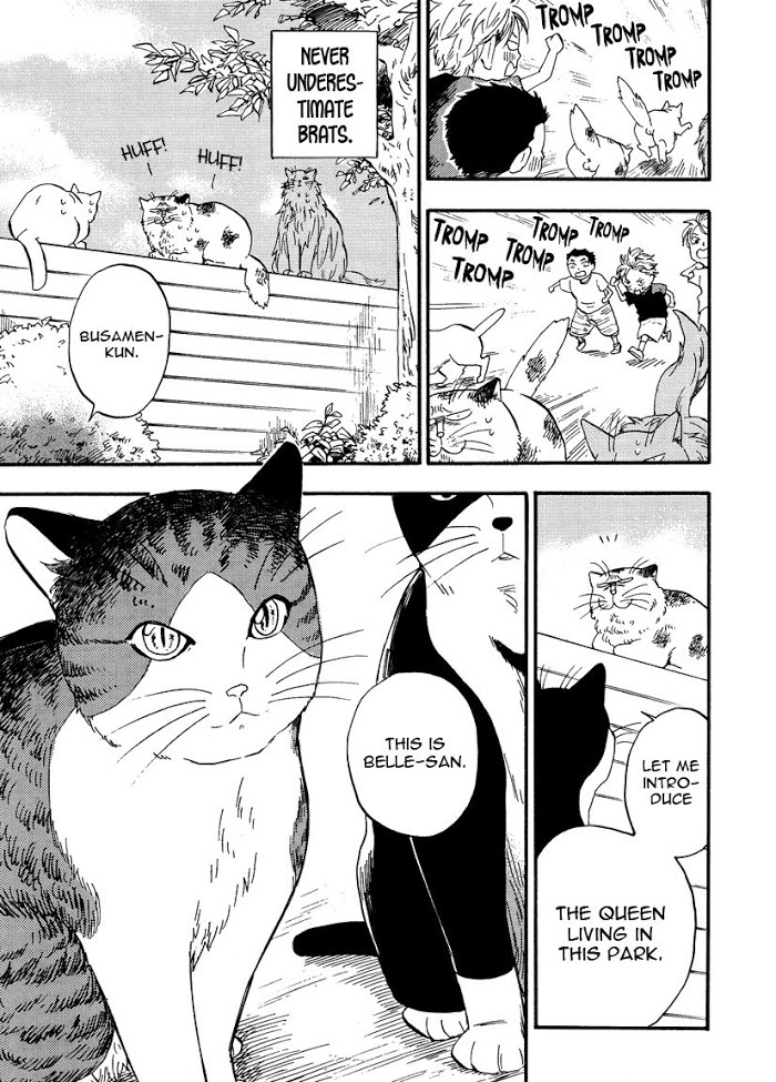Busamen is a stray cat who's ugly and loves women, but inside is cool and handsome(!?) On the other hand there's Ikemen, a prideful and beautiful cat (but he's cowardly). Which one will be the most popular among pretty women? Watch their fight unfold! (Source: Ikemen Scans)