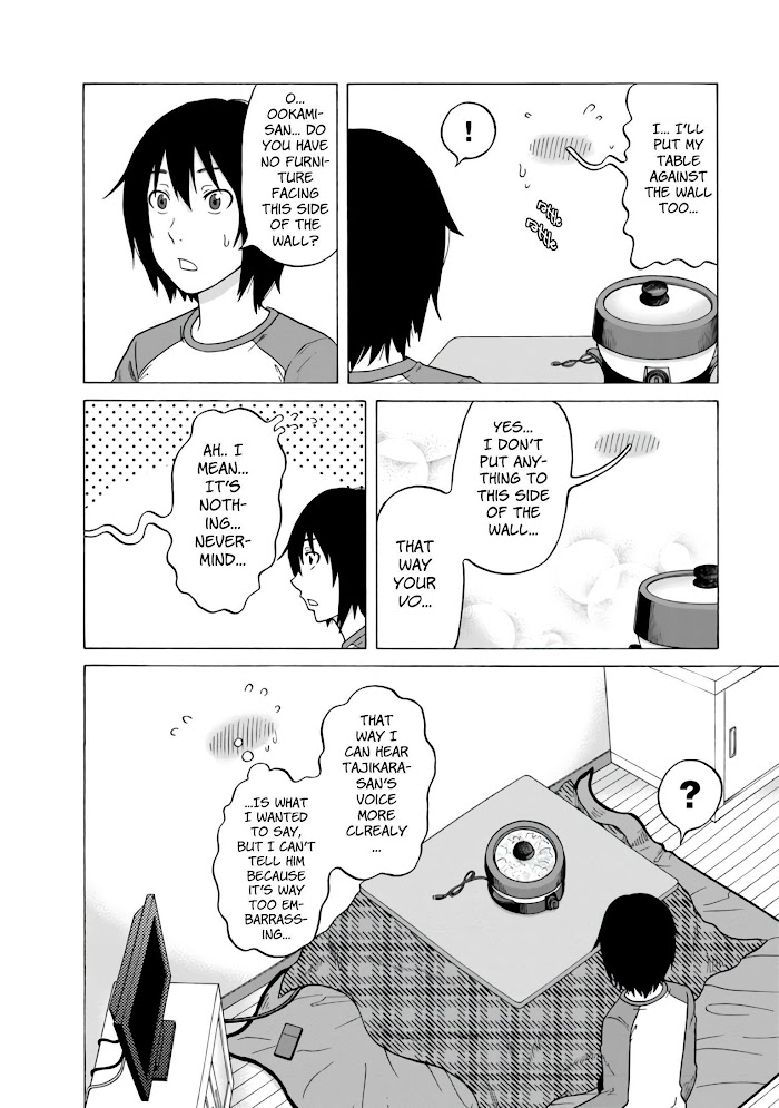 The story follows Osamu Tachikara, a college student who can't make friends, but instead he talks to his female next-door neighbor Hinako Oogami through the wall...though he doesn't even know what she looks like. (Source: ANN, edited)
