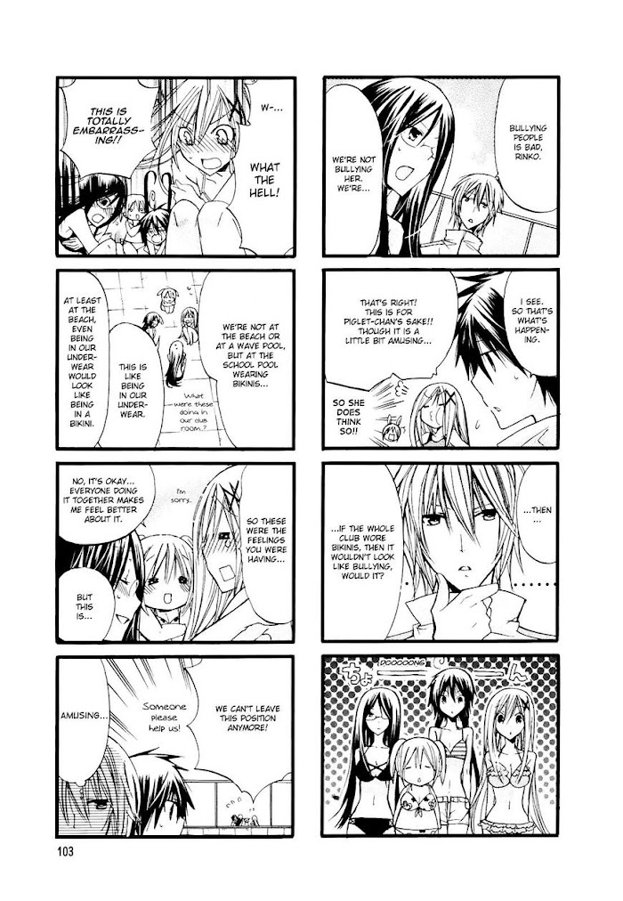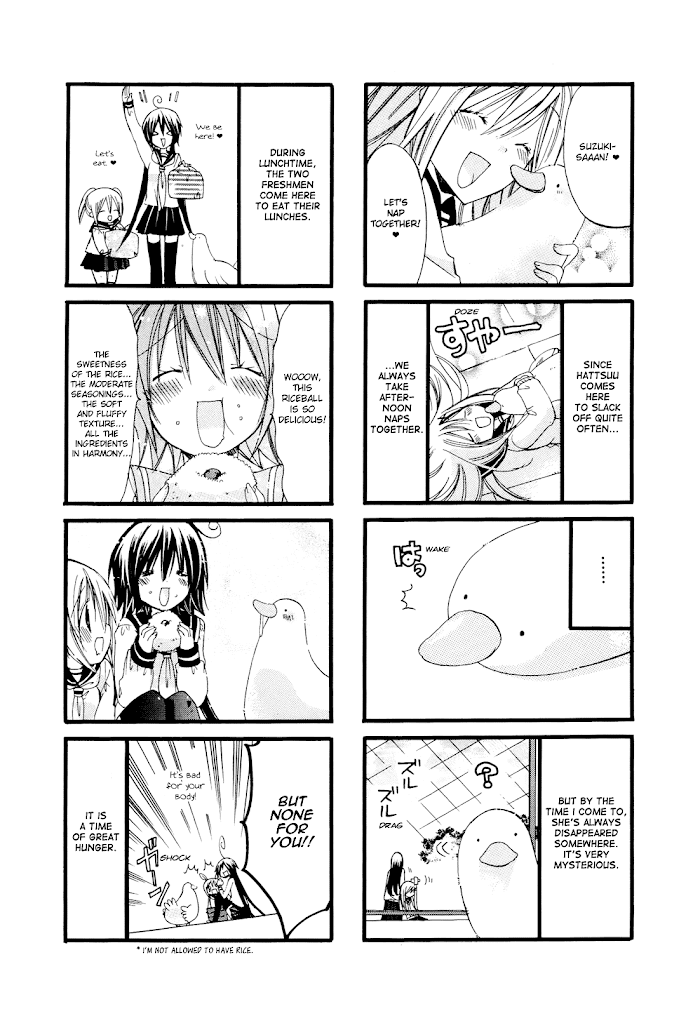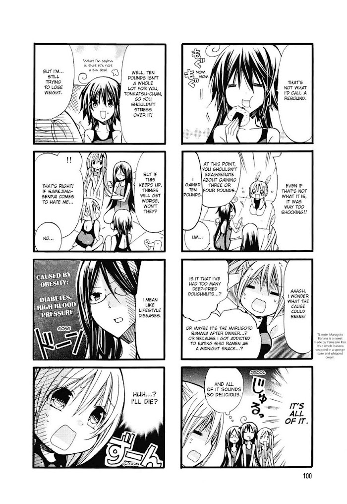 Oota Katsuyo is a 15-year-old girl just entering high school. She's short and plump, thanks to being the daughter of a family that runs a tonkatsu shop. She's followed her crush from middle school to the same high school, and she's devastated when she finds out he's not interested in chubby girls. As she's looking for ways to lose weight, the free-spirited president of the swimming club, Itou Hatsume, and her serious and demanding vice-president, Kaji Rinko, are looking for new members to supplement their roster of two. When Katsuyo meets Kaitani Ayumi, a rail-thin girl with an appetite that matches her own, Ayumi drags her to the swimming club to join up. Will Katsuyo have trouble measuring up to the demands of the swimming club, or can she make a big splash?