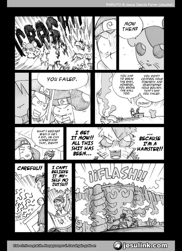 Raruto Sisepuede manga summary: Raruto is a Spanish webcomic by Jesús García Ferrer (Jesulink), started in 2005, and is a parody of the Japanese manga Naruto with absurd humor and a careless super-deformed artstyle. Raruto Sisepuede is its sequel, based on Naruto Shippuuden, ongoing since 2009. Despite the artwork, Raruto became the most well-known parody of Naruto in Spain, and has been sold in printed volumes in manga conventions in Spain.The popularity of Raruto led Jesulink to start a new manga, "5 Elementos", which despite being also published online, has sold over 15000 copies in its printed format.Prequel:> Rarutohttp://mangapark.com/search?q=sp/raruto
