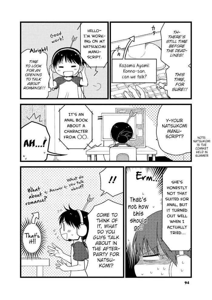 The recently wed manga artist Kazama Ayami is drawing an essay on her true feelings about romance and marriage. She had minimal interaction with boys in her all girls school, but she got married with a boy she knew for a year, and now she must relive her embarrassing and pitiful memories for drawing her manga! Meanwhile, her rival manga artist is the boy she is about to marry, so will this become another embarrassing memory...!? This will be her challenge of appealing to other persons purer feelings! (Source: MU)