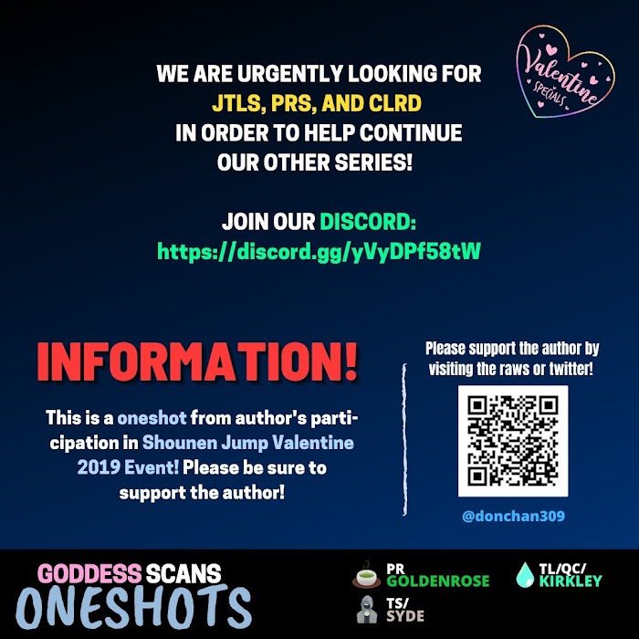 Oneshot, part of "J Romcom Festival!" celebrating Valentine's Day in Weekly Shonen Jump # 11 - 2019 Author's Twitter: @donchan309
