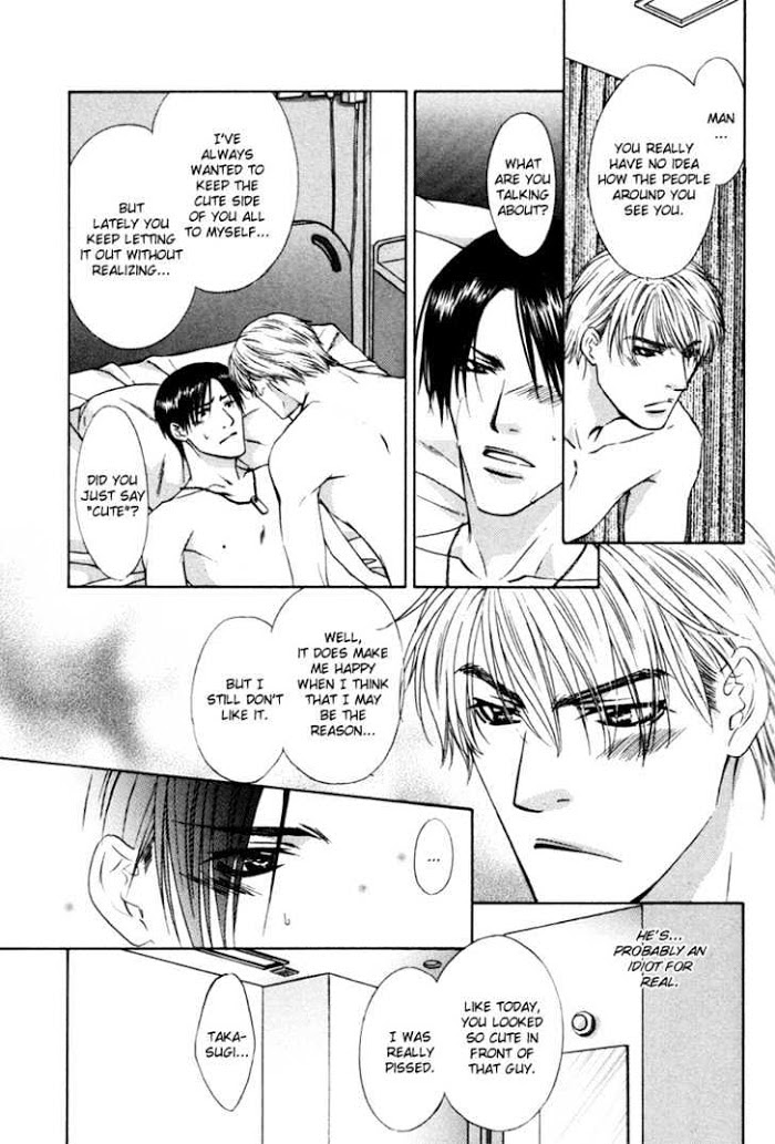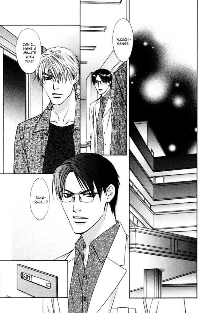 Retsujou no Hazama manga summary: Yuuichi and Takasugi's story continues. Yuuichi is having doubts about their relationship. Read in this order: 1. Okubyou na Junjou 2. Retsujou no Meikyou 3. Retsujou no Yuuwaku 4. Retsujou no Hazama 5. Retsujou no Rensa