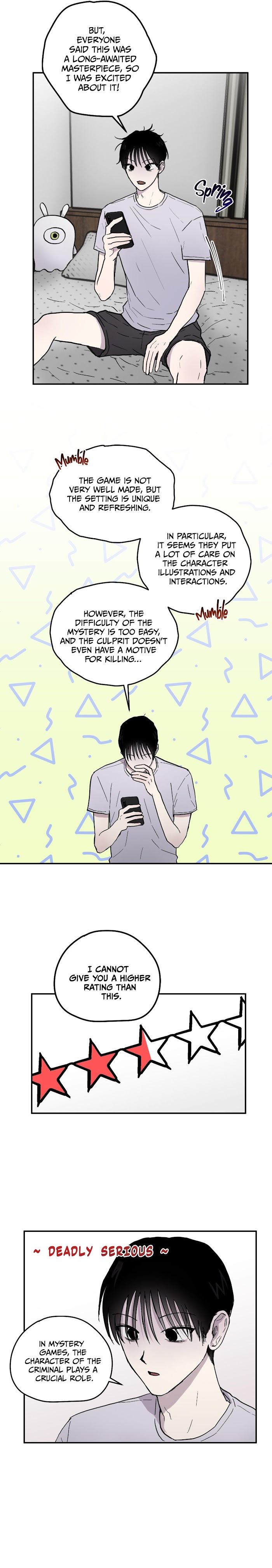 Go Yiyoung, a mystery game enthusiast, is walking down the street after leaving a review for the popular mystery game [The Sin of the Blue Silhouette]. As he walks, he fails to avoid a bicycle and gets hit. When he regains consciousness, he realizes that he has entered the mystery game he was just playing. To survive, he must prevent the murder of the culprit he encountered in the game, Cha Gyeonwoo...