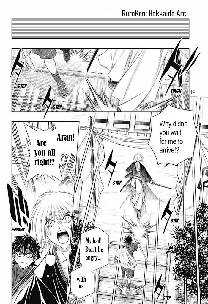 It is the 16th year of the Meiji era. Five years have passed since Kenshin Himura stopped the uprising of Makoto Shishio. Though the flames of his budding revolution were extinguished, the scars left in its wake are still felt across Japan. Remnants of his group-though scattered-still exist. Some have found peace while others continue to fight. After a remaining faction tried to revive the revolution, Shishio's old sword fell into the hands of Ashitarou Hasegawa, an orphan boy who has never known a home. The conflict also leaves both Aran Inoue, a 16-year-old half-Japanese, half-American boy, and a mercenary girl named Asahi Kubota with a hefty price to pay off, with nowhere else to go. But luckily for these individuals, the Kamiya dojo has always been a place to accept wanderers without prying into their pasts. The three are keen to start fresh, so when two members of Asahi's former clan show up demanding her return, Asahi refuses and things start to get ugly. In the midst of the chaos, the clan members drop a package containing a picture of dojo proprietor Kaoru Kamiya's presumably deceased father and his location-Hakodate, Hokkaido. With only this information, the members of the Kamiya dojo embark on an adventure across the sea in the hopes of finding news about Kaoru's father and the reason he is being targeted. [Written by MAL Rewrite]