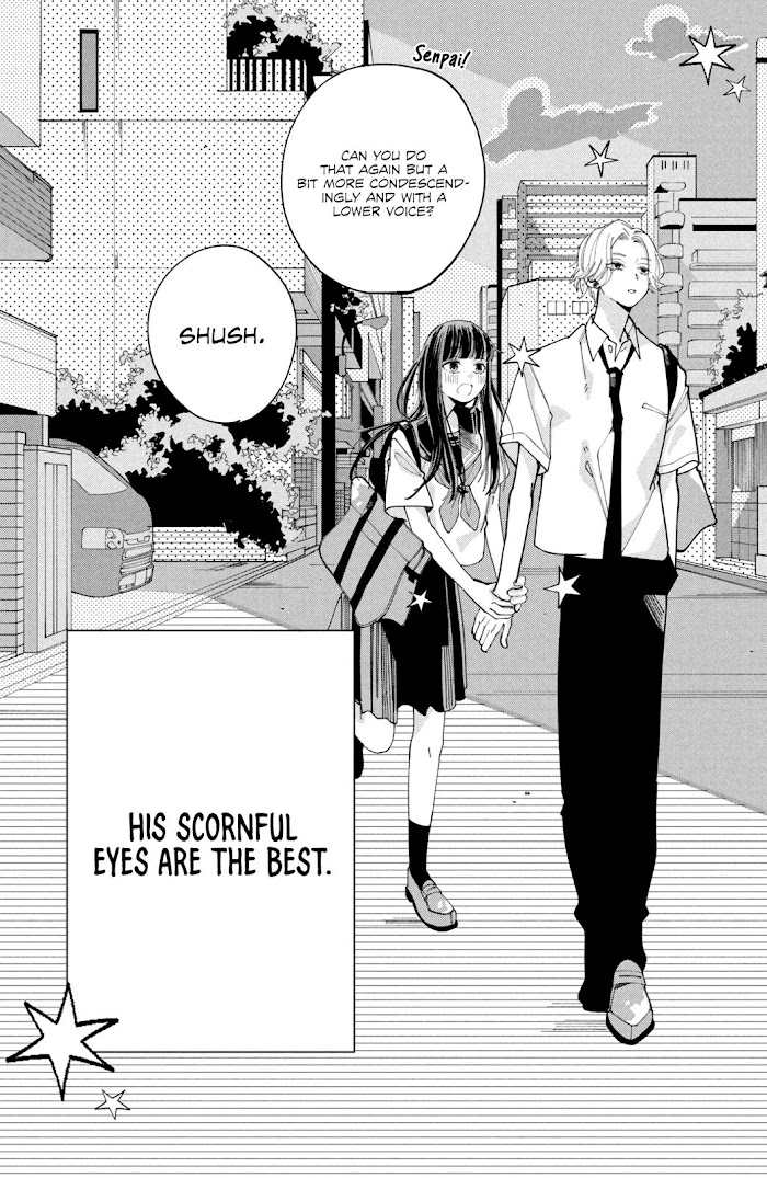 A high school girl, Utako, has an unusual 'love'. That is, she was attracted to cold attitudes and when someone dealt with her in a bothersome way!?She has no romantic feelings for him, but is always attracted to boys who behave in this way. She met Narumi by chance, who was always languid and had a slightly teasing way of saying things, and he was exactly her ideal ? In order to become friends with Narumi, she tried to get to know him, but...? Read Sagesumu Shisen ga Saikou desu on mangago