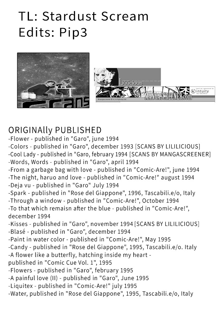 You've never seen manga like this before! No annoying speed lines or sappy, neotenic eyeballs here - just pure Japanese counterculture. This anthology of contemporary underground comics from Japan features a wide variety of styles and topics ranging from the humorous to the profound. There's a whole world of comics out there, and it's not all Godzilla and schoolgirls! A great introduction to the other Japanese comics featuring Asia's answers to Robert Crumb, Dan Clowes, and Chester Brown! List of included Oneshots: "Horse Horse Tiger Tiger" by Imiri Sakabashira "A Hooker's Room" by Naoto Yamakawa "Kisses" by Kiriko Nananan "Kitty Court Drama" by Nekojiru "What a Mixed Up World!" by Yasuji Tanioka "Million Dollars" by Yoshiharu Mitsumoto "The Abalone Cat" by Naoki and Shunichi Karasawa. (Source: MU)