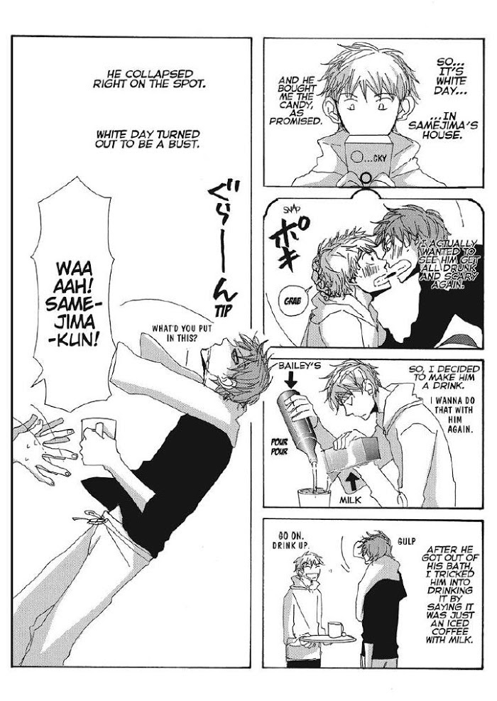 Samejima and Sasahara are friends. They go to college together, they're in the same year, and they even work at the same place! But when Samejima confesses his feelings run deeper, their relationship explodes in passion... and irritation! Sasahara tries to ignore Samejima, and he tells him to wake up-he tries to accept him, and Samejima plays hard to get. It's enough to drive a man crazy, in more way than one! (Source: DMP)