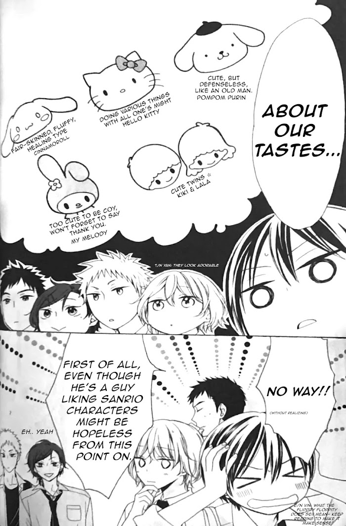 Oosaki Rio, transfers to a new high school and befriends some guys that are Sanrio character fans as much as she is. But one of them caught her attention.