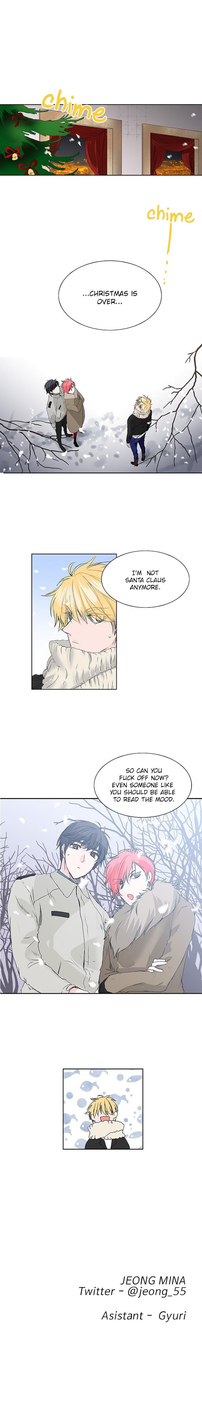 Sandy hates doing Santa Claus' job which is something that has been handed down in their family for generations. Staying beside him, is a Rudolph who is dedicated to helping Sandy with all his heart. Not only in Sandy's Santa Claus responsibilities, but also in a lot of other things…? (by Random Fujoshis Scans)