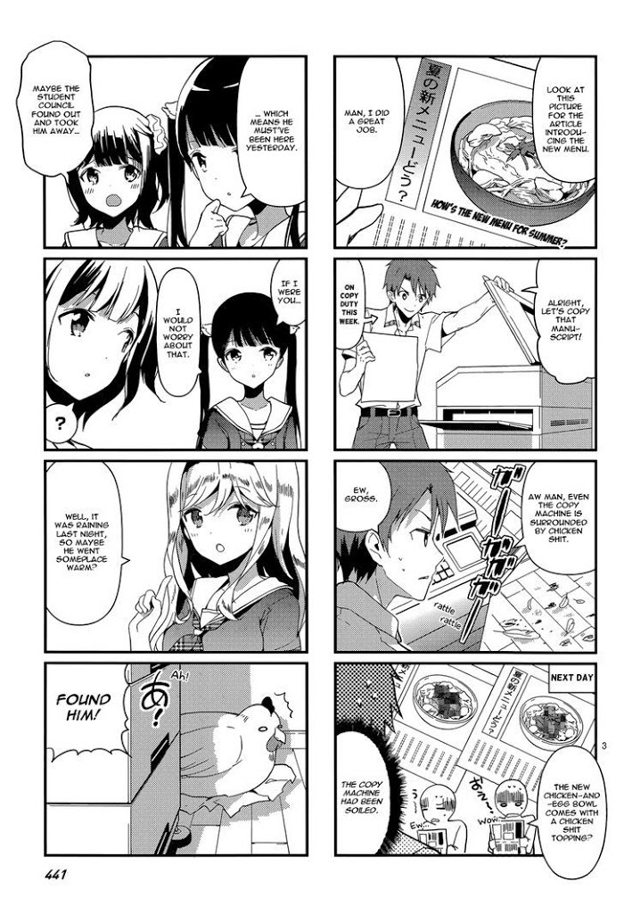 From the talented artist who brought us Kamisama no Memochou and Masamune-kun no Revenge comes a cute little 4-koma comic about the wacky hijinks of the Nishi High-School Newspaper Club. (Source: MU)