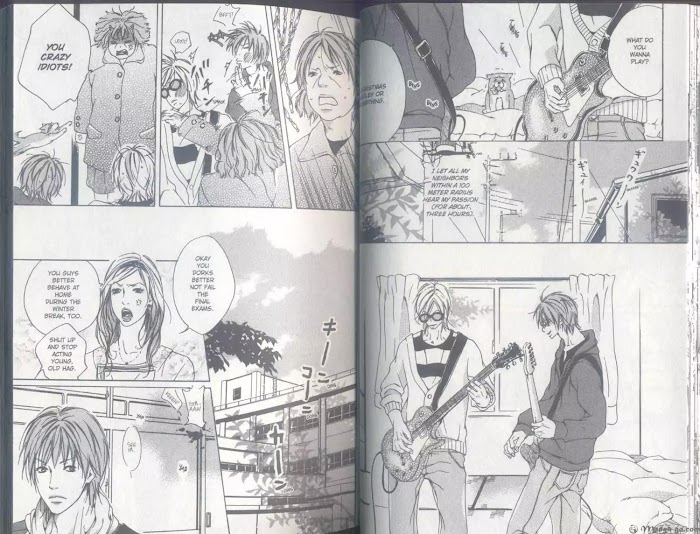 Vocalist Shori and guitarist Nozomu are engulfed in a passionate love affair when they should be studying for their college entrance exams. And arrogant bassist Ai is going to America alone? Even worse, drummer Yumeji seems to be involved in a mysterious incident. Looks like the day when the band members take off their school uniforms and go their separate ways is quickly approaching. The band might be breaking up as reality intrudes on their simply school lifestyle, but you can bet that these guys are going out on a blaze of glory. (Source: June Manga)