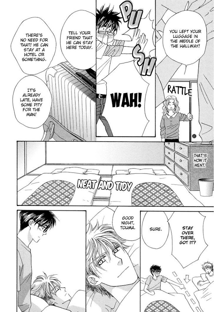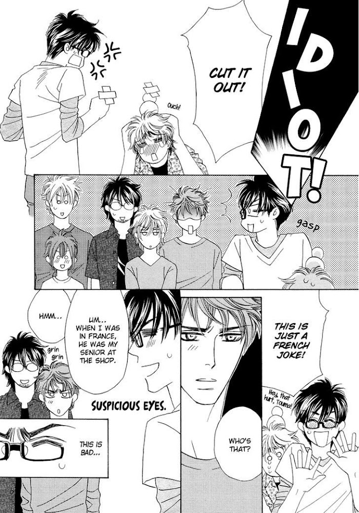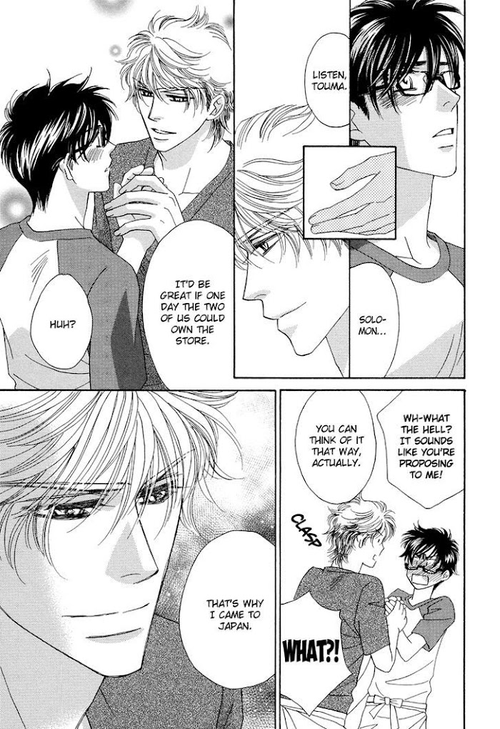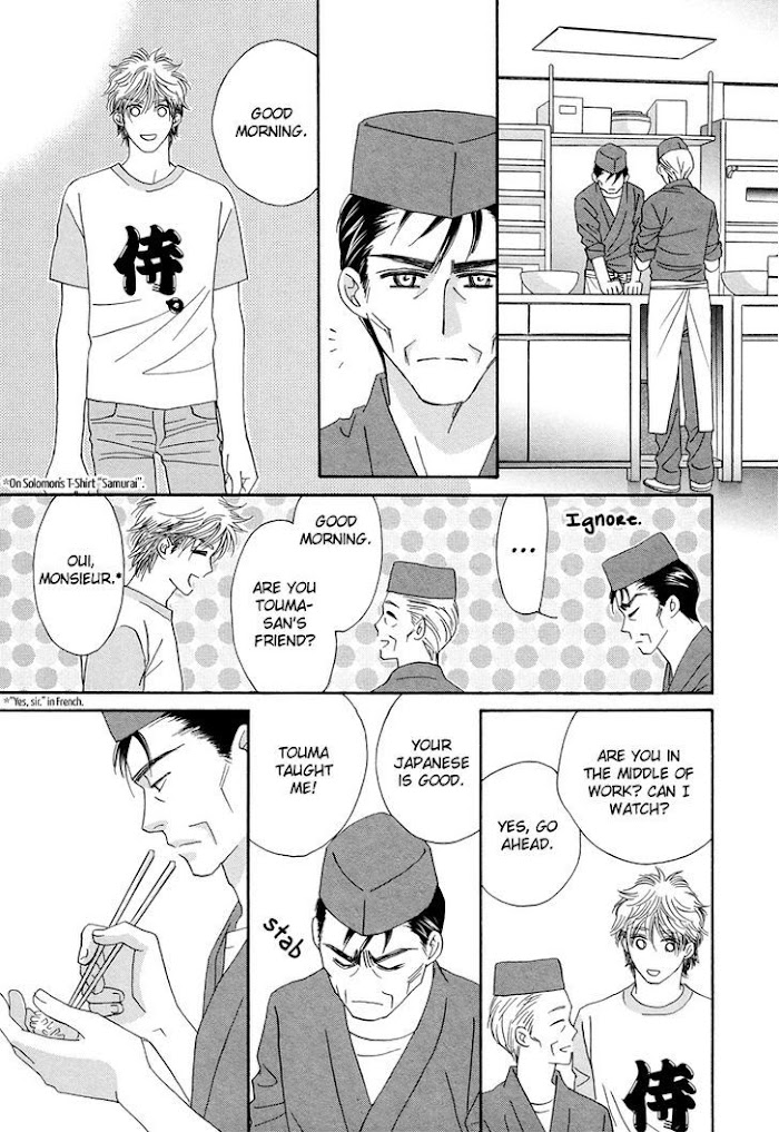 Touma returns home from Paris where he was studying to be a patissier when his father, an artisan making traditional confectionary, collapses. His father is all right, but the relationship between father and son is awkward. Then Touma's fellow patissier apprentice and sex friend, Solomon, comes chasing after Touma. Solomon is impressed by the Japanese confectionary made by Touma's father and claims that he wants to become his apprentice! (Source: MU)