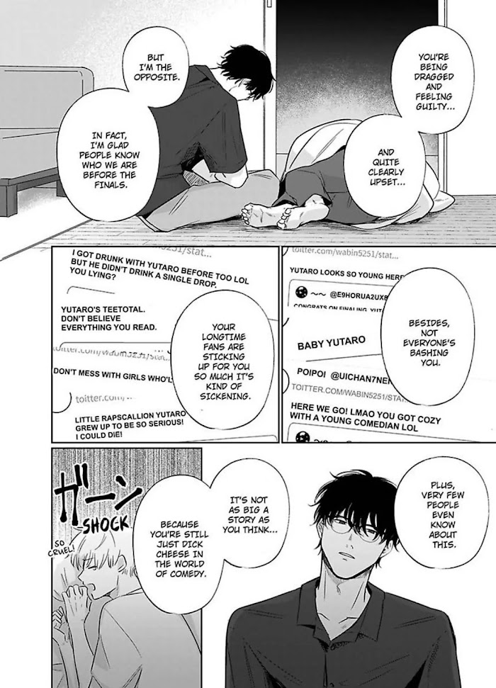 “Let's be lovers only in this room" Even though they are comedian duo, Takei suddenly stopped talking with his partner Yutaro. To find out the truth, Yutaro agrees to go on a prank show. Yutaro, as a prank, tells Takei to break the duo but Takei starts crying. Yutaro asks him the reason for his tears after the show and Takei confesses to him that he loves Yutaro. To better work out the relationship, Yutaro suggests acting as lovers only in his room until Takei is over with Yutaro. There begins the secret relationship between a comedian duo...