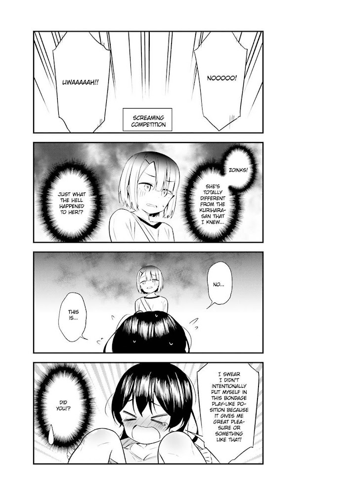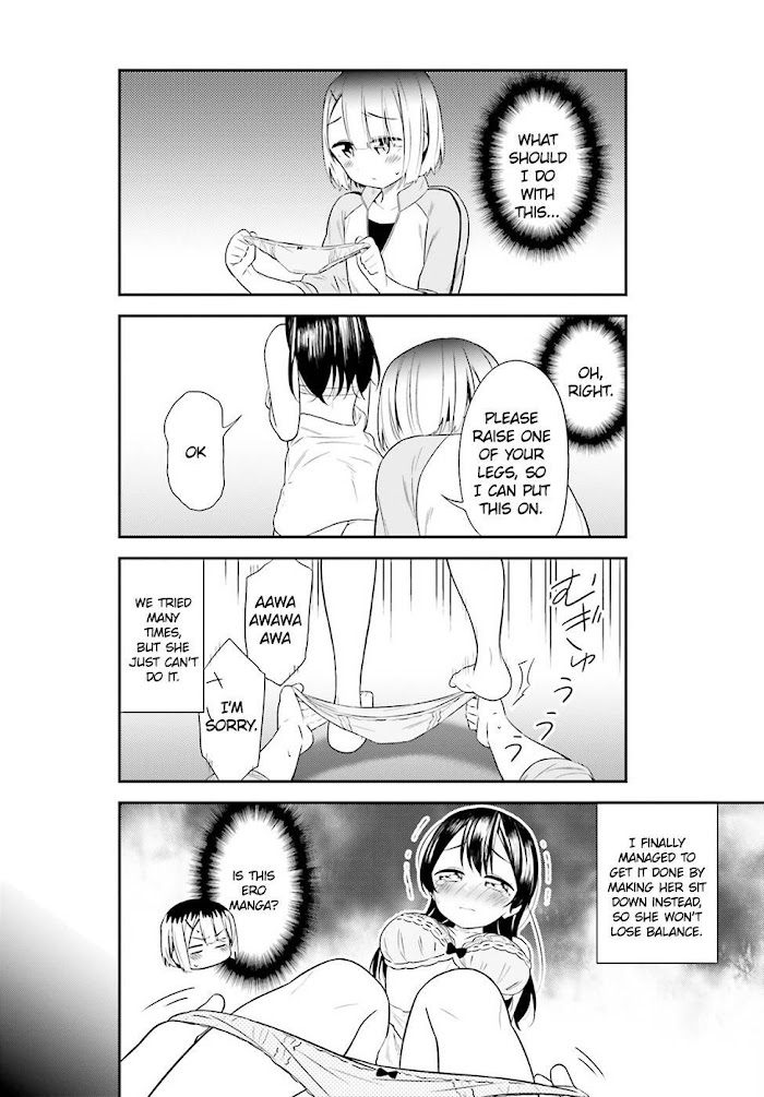 A graphic designer, Kaneko Ayaki helps the programmer senpai, Kurihara Fumi change her clothes. (Source: MangaDex)