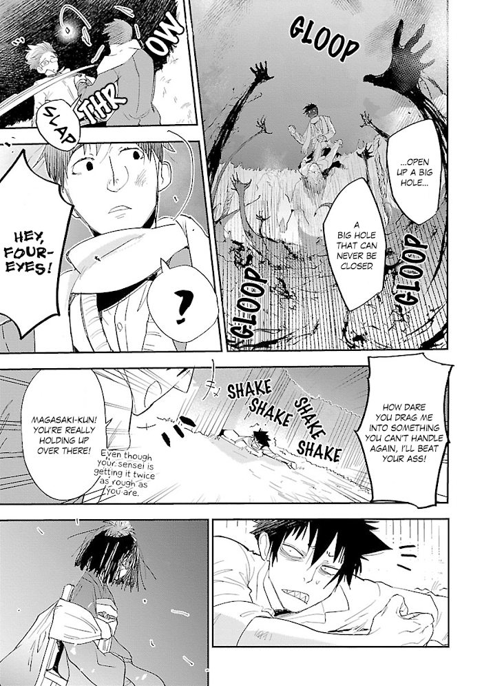 Sensei, Kowai Hanashi Shimasenka? manga summary: TRIGGER WARNINGS: Rape Strange rumors, mysterious legends, and suspicious corpses... Hizuki Reiji is, by all accounts, a normal high school Japanese teacher, but he's thrust into the middle of a mystery when he moves to another town for a substitute teaching position. The woman he's replacing disappeared two weeks ago, and rumor has it that the problem child of her class, Magaki Kyoichi, was seen with a blood-stained knife the day before she vanished. The cops are on his trail, but what really happened to Sakuraba-sensei? And how are Hizuki and Magaki involved?
