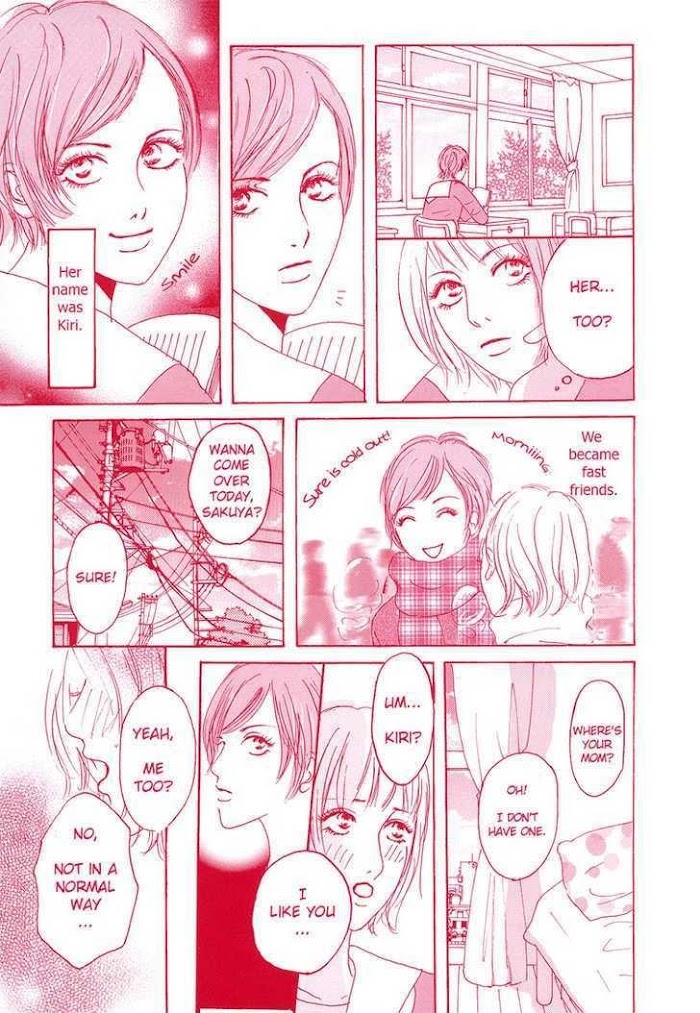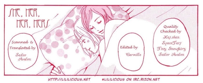 She, her, her, hers manga summary: Sakuya is shaken up by her parents' divorce and is worried that her relationship won't last forever either. Her lover, whose parents are also divorced, understands her feelings and tries to reassure her. From the anthology "Girls Only."
