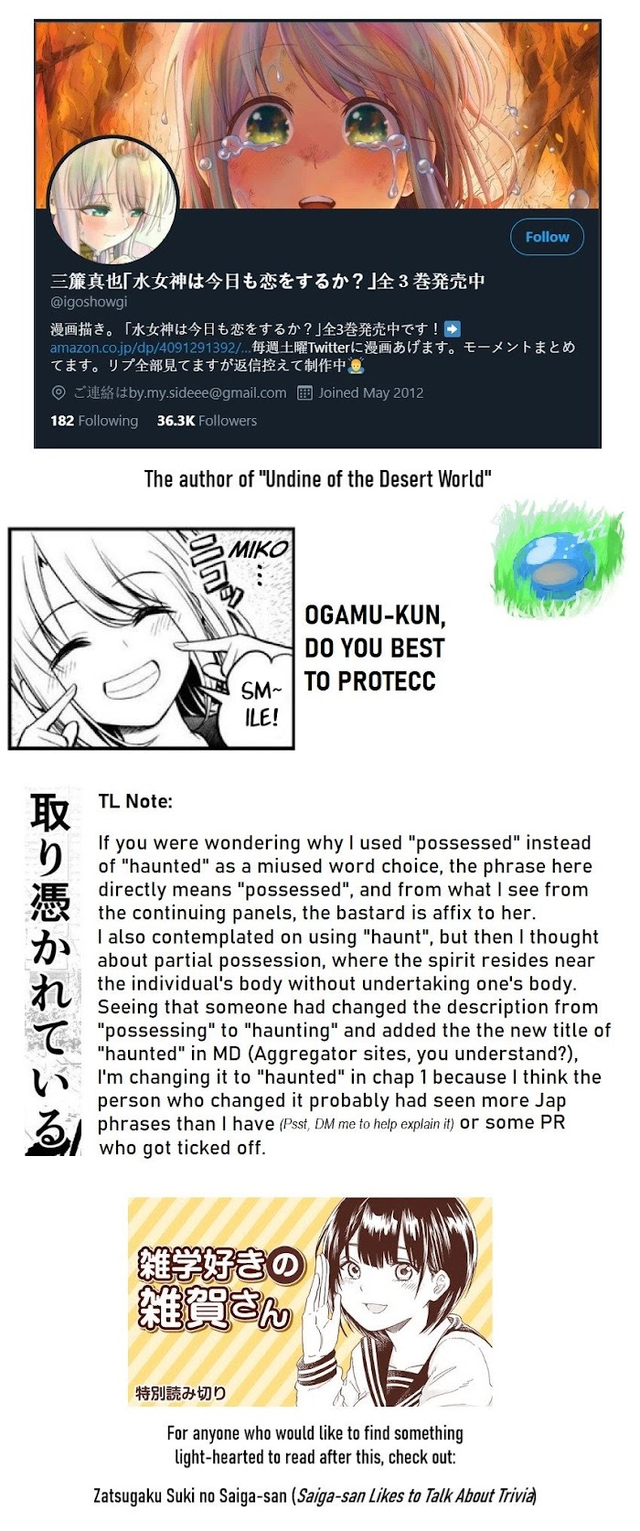 Sakanoue Ogamu likes his childhood friend, Kannagi Miko, but the evil spirit possessing her is a cockblock. [*][url=https://twitter.com/igoshowgi] Author's Twitter[/url]