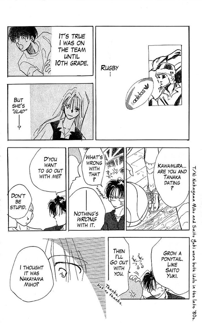 A collection of one-shots by manga-ka Kawahara Kazune. Shiawase no Kanzume: Emi has been dating Fujii-kun for a month now, but their relationship seems no different than when they were still acquaintances. Depressed that it's still a one-sided love, one day, she gets a prize called "Canned Happiness" from her local town's raffle. Unsure of what it is, she accepts it, but soon forgets about it until suddenly, a small man with a white beard appears in front of her... Otoko no Ko ni wa Wakarumai: Hasegawa Shinako has always been worried about her weight. When she secretly finds out that she weighs more than the guy she likes, she vows to go on a diet. Embarrassingly, he finds out and...?? Million Words: Kitou is dating Kawai, a guy one grade below hers. Although things are going well enough, she still can't help feeling like the relationship will not last. They each have their separate worlds and Kawai will probably notice this soon... Kawaisa Amatte: Matsuda has always had a problem saying what she truly thinks in front of people. Once she gets nervous, she seems only able to say the exact opposite words she means to say, especially in front of Tsumura, the guy she likes. At this rate, he will abhor her in a matter of days... Itsumo Watashi ga Koko ni Iru: Kawamura asked Tanaka out as a favor to Kondou-senpai. The plan was that Tanaka would refuse, Kawamura would push harder, and Kondou would heroically come to Tanaka's rescue. The plan was NOT for Tanaka to say yes...