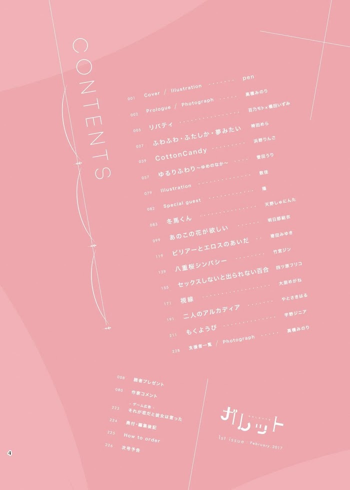 Slit Mouth Woman • Standard Deviation Disparity • Gaze • I Beg of You • The Sweetness of Bread is the Taste of Love Japanese • ガレット