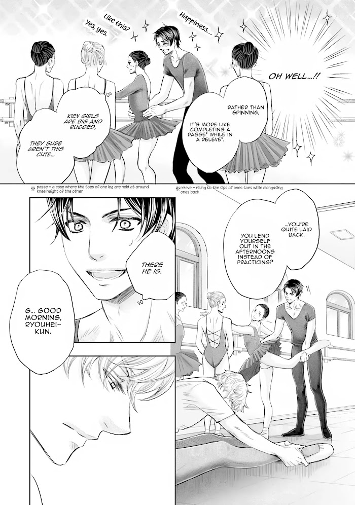 Veteran dancer, Kuroda Hiroya, is double cast to dance alongside the ballet world’s new prince, Shiraishi Ryouhei, in “New Swan Lake.” Shiraishi one-sidedly sees Kuroda as his rival, but due to a trauma, Kuroda doesn’t want to compete with him. Though he admires Kuroda for a performance of his he saw when he was a child, his obsession up until this point is unusual, and somewhere along the way, his feelings turn into lust and love. Every time they dance together, their building lust is shown through their tights… When they’re alone together, Kuroda who was suffering, is passionately moved! A young genius x beautiful veteran ー the beginning of a sensual and erotic competition!
