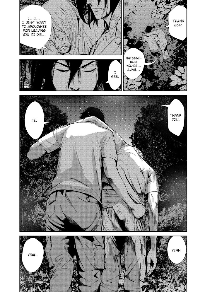 It's a day like any other, and high school students Ie and Kazu are on the bus home from school when, suddenly, it floods with a mysterious gas. The pair pass out and wake up to find themselves aboard a truck packed full of human bodies. They're surrounded by rows of frozen corpses... and a staff of living human beings sawing them into pieces. Where are they... and how can they escape from this nightmare? (Source: Kodansha Comics USA)