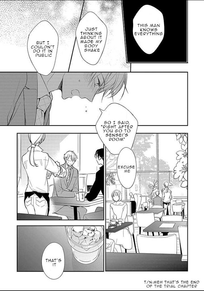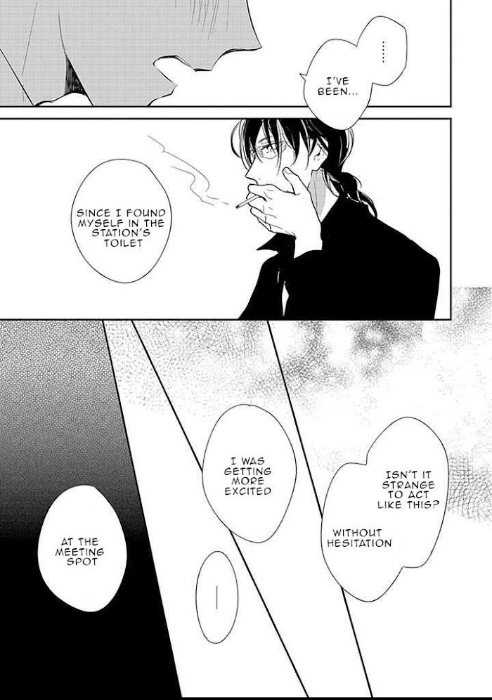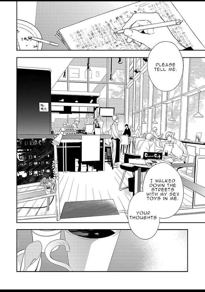 From Salty Potatoes Please spread your legs Nakahara-san. For my novel?. Nakahara, he is an editor in charge for a popular novelist, Kuroki. To help him write his work he would offer his body to have the same experiences as the protagonist in Kuroki's story. Meanwhile the film adaptation of Kuroki's novel was announced. Yoshizaki, in charge of sales, came from another branch for the project and he seems to have a disturbing aura around him?