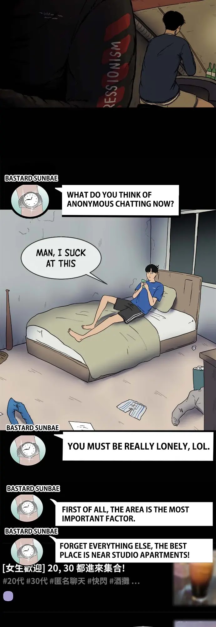 Description : "I wasn't supposed to go there in the first place." ‘Hyuk’, who started ‘Anonymous Chat’ because he was lonely, He even has drinks with strangers to relieve his loneliness. Then one day, news broke that one of the people attending the meeting had been killed. ‘Hyuk’ feels suspicious as he reunites with the people he had been drinking with on the same day...