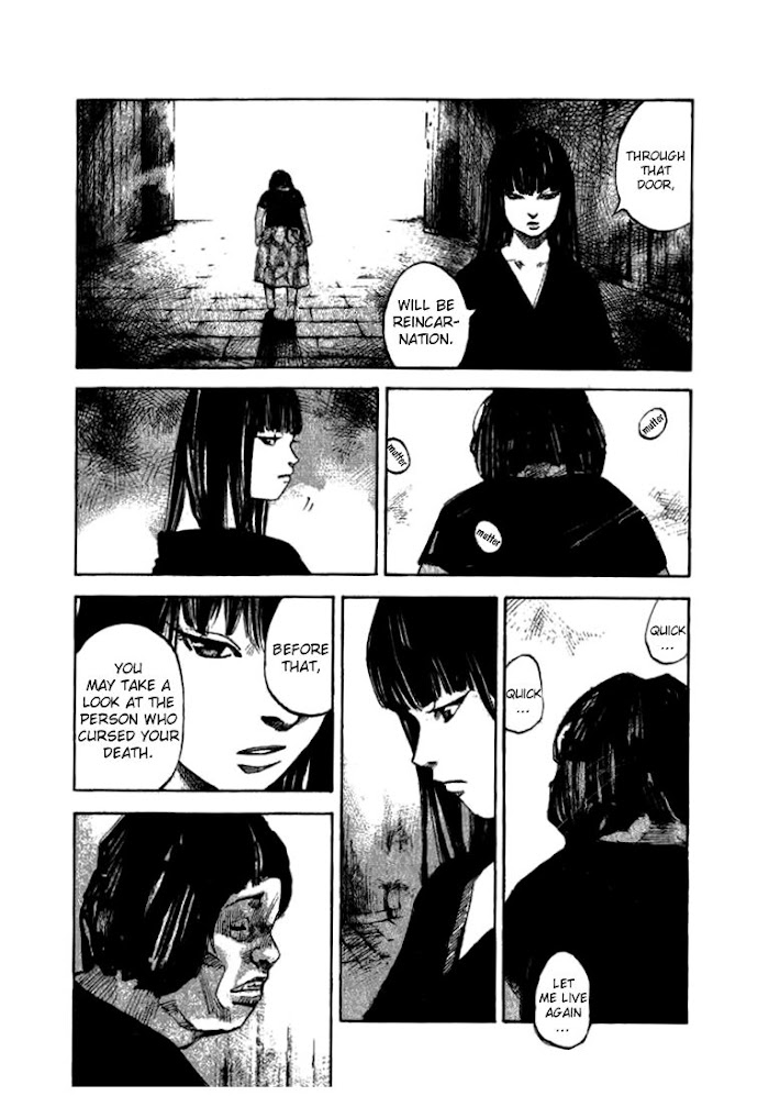 Skyhigh Shinshou presents the stories of those souls who get to the Gate of Grudges. Izuko, keeper of the Gate of Grudges presents each soul with three choices: pass through the Gate of Grudges to heaven and be reborn, refuse to admit death and remain as a ghost on earth, or haunt and kill one person and then proceed to hell and eternal suffering. What does each soul choose and why? (Source: Evil Flowers)