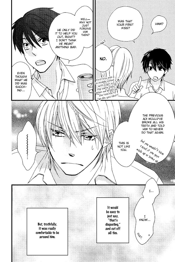 Aoi, a first year student in all-boys high school, is a violent but beautiful boy. Viewing his good looks as a burden, he ruthlessly rejects every guy that approaches him. Until one day, Aoi notices Azuma, who's been "observing" him quietly from the sidelines. To his surprise, Azuma's attitude actually makes him feel safe, and he slowly fell in love?! (Source: MU)