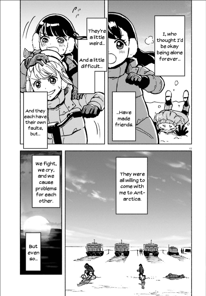 Mari Tamaki is in her second year of high school and wants to start something. It's then that she meets Shirase, a girl with few friends who's considered a weirdo by the rest of the class and nicknamed "Antarctica" since it's all she ever talks about. Unlike her peers, Mari is moved by Shirase's dedication and decides that even though it's unlikely that high school girls will ever go to Antarctica, she's going to try to go with Shirase. (Source: ANN)