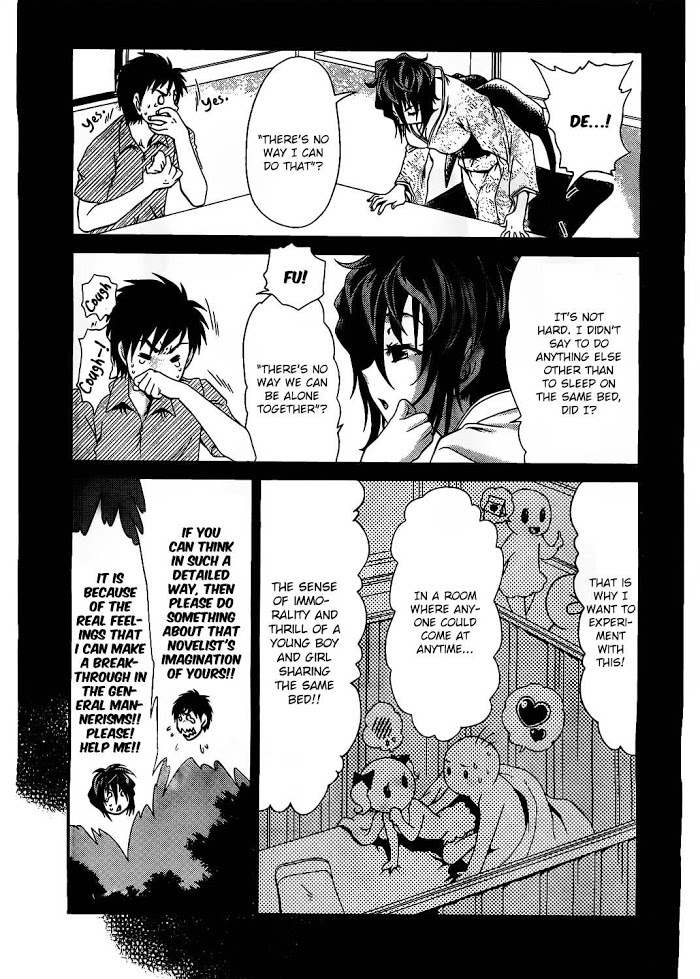 After his happy-go-lucky lovestruck parents suddenly decide to go on an amorous traveling adventure, Yuki is shuffled off to live with one of his dad's old friends. He knows very little about his new living circumstances, save that his dad's friend is an author with three children. Something seems a little off about the girl who's sent to meet him, the fidgety and overly anxious Aya, but he doesn't fully understand what's going on until he arrives at the house. Yuki, who has had very little to do with women thus far in his life, is now set to live in a house with four of them. The head of the house is actually an author of erotic novels, and she habitually forces her three daughters into embarrassing sexual situations. How will Yuki cope with his new life? (Source: MU)