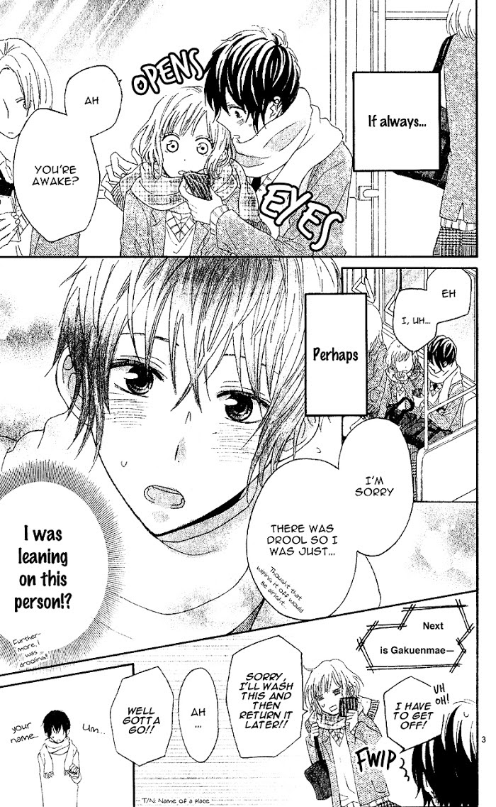 "Somehow the train ride is becoming more peaceful lately..." Mariko has a habit of sleeping on the train, however she didn't realise that she's been sleeping on a certain kouhai. Despite of her misgivings, they somehow became a trial boyfriend and girlfriend. The only issue lies within herself, in which she has a harder time trying to trust in love again... (Source: MU)