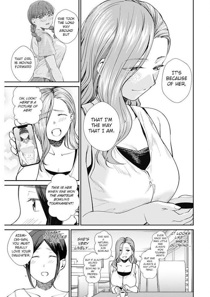 Touka is an ordinary high school girl who loves bowling. Her father runs a bowling alley, she has a crush on her former coach, and she is a pro at the game. The only issue is that if anybody watches her bowl, she becomes extremely conscientious of her body and plays poorly. To ensure this doesn't happen, Touka's best friend tries to help her overcome her shyness while bowling. (Source: MangaDex)