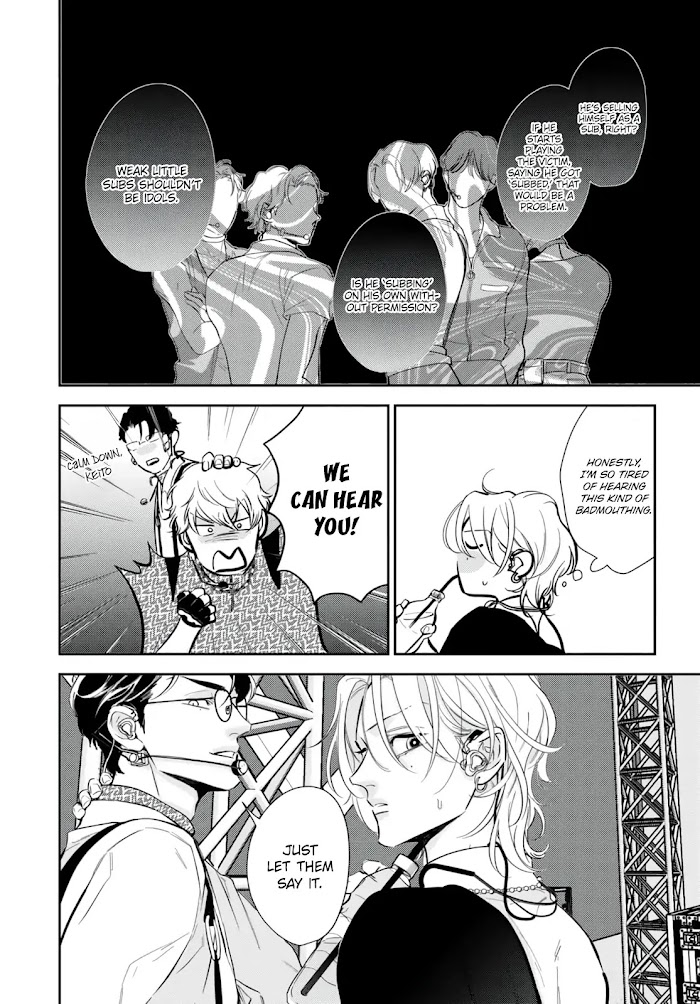 “Be my exclusive Dom.” An SSS-ranked Dom in disguise × a center idol resisting his Sub nature— What begins as a relationship of convenience with no feelings… Where will it lead? In the entertainment world, where trouble frequently arises due to the Sub nature and many are forced to retire, Towa stands as the only Sub to have reached the coveted position of center in a popular idol group. But to survive in a world overflowing with Doms, he’s been relying heavily on suppressants—pushing his body to its limits day by day. During a live performance, he locks eyes with a man in a hoodie; who has a powerful Dom (glare), despite taking suppressants, it triggers something. Though Towa realizes that this hoodie guy, who emits an abnormally powerful glare, is dangerous, he still decides to seek him out, hoping to use him as a training partner for dealing with Doms…