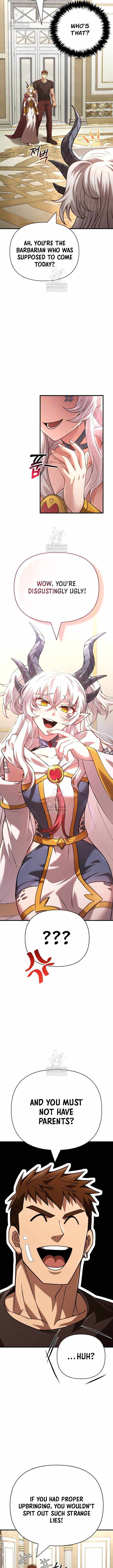 Read manhwa Surviving The Game as a Barbarian [By the studio that brought you !]The protagonist, Lee Hansoo, finally reached the boss stage after nine years of playing the game "Dungeon and Stone", which no one had been able to clear until now. However, just as he entered the boss room, he saw a notification alerting him that he had cleared the tutorial and that he had possessed the body of the barbarian, Bjorn Jandel, who was a playable character in the game. In the world of "Dungeon and Stone", only one city remained standing after the destruction of the world. A labyrinth would open every month, offering explorers a chance to clear it for rewards. In this world where barbarians are seen as useless in everything but battle, a barbarian who does not fight will not be able to survive. If one cannot pay the outrageous taxes demanded by the city, the only fate that awaits is a downgrade in status to a lower-class citizen'. If it is revealed that you are possessing the character you are playing, you will be named an "evil spirit" and killed. The only way for Lee Hansoo to survive is to enter the labyrinth and fight while risking his life. With the skills he has accumulated over nine years of gameplay and a stupidly strong barbarian physique, he strives to survive in this game