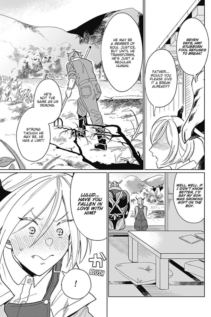 In the distant future, there will be species from different realms that walk this earth and coexist with humans. And of course, not everyone and everything will be peaceful. To combat any conflicts that arise, a new Special Task Force is founded: Soul Justice. The Soul Justice is so strong that they even defeated the Demon King and stopped his quest for world domination. (Don't worry, he has since turned a new leaf as a highly-skilled farmer.) Mamoru Akamichi is Soul Red of the Soul Justice. And although he helped save the world from the Demon King, he remains as upbeat and humble as ever. He protects everybody, even the Demon King's clumsy son, Lulud, who has proclaimed himself to be Soul Red's arch-nemesis. To Akamichi, defeating Lulud is simple as pie, much to the Demon Prince's dismay. Challenge after challenge, duel after duel, Akamichi always comes out the victor. What can Lulud do to conquer his archenemy finally?