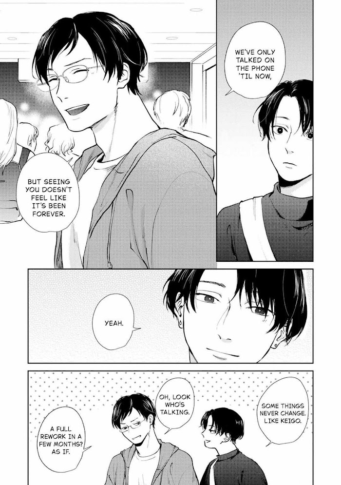 Nao is afraid of how others view him and has trouble talking to people. Until now, his best friend Keigo, who knew him well, had always answered for him. However, Keigo is soon leaving his hometown. Keigo says, "I know what's on your mind," but he seems unaware of Nao's feelings.