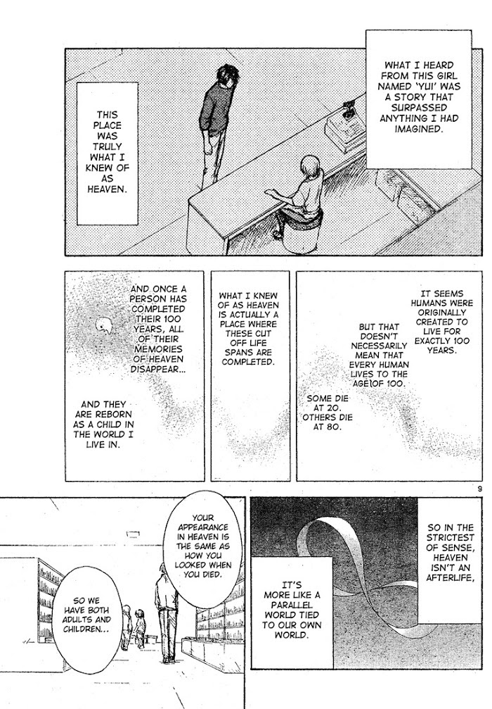 Tengoku no Honya (Heaven's Bookstore) manga summary: This was actually created as a promo for a movie by the same name(Heaven's Bookstore). http://www.imdb.com/title/tt0423360/Satoshi-kun, a drifter, arrives in heaven to work at a bookstore as a substitute manager. There he meets Rui, a girl who also temporarily works there. Follow the daily events of these two people as the place they are in (Heaven's Bookstore) help those regain what they lost.