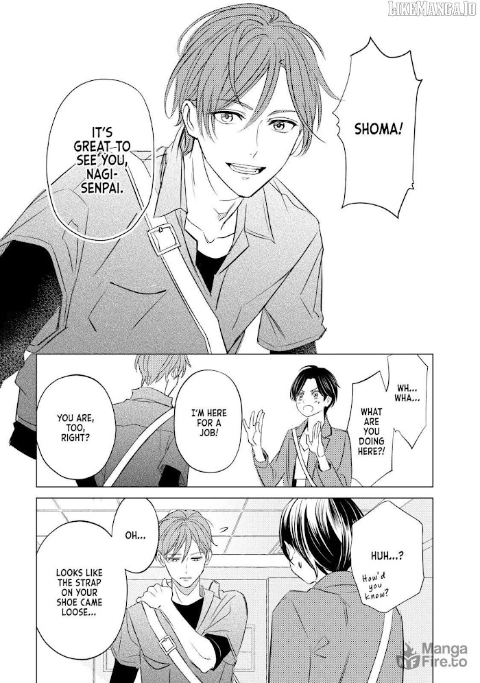 [from cotton candy scans:] Nagi, who has always dreamed of a sweet romance, is troubled by her dislike of men. However, she meets a beautiful, androgynous, male model, Aran, who asks her to help him with his modeling work. Nagi's heart is pounding at MAX capacity at his urging and promise that "I'll teach you every thing you need to know"! When she realizes that she doesn't mind being touched by him because of his transcendent beauty, Nagi asks this beautiful and pushy man to give her lessons about love in exchange! Love lessons for a limited time between a beautiful, egoistical male model and a boyish and competitive girl!