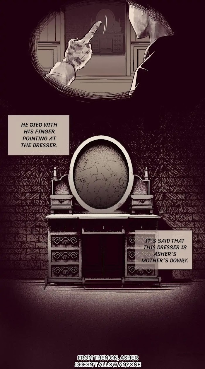 The Frightening Dresser manga summary: Uncle Asher's father died with his finger pointing at the dresser, which is Asher's mother's dowry. From then on, Asher didn't allow anyone to touch this dresser. He took it as his missing mom. And the truth was finally uncovered when the old house pulled down…