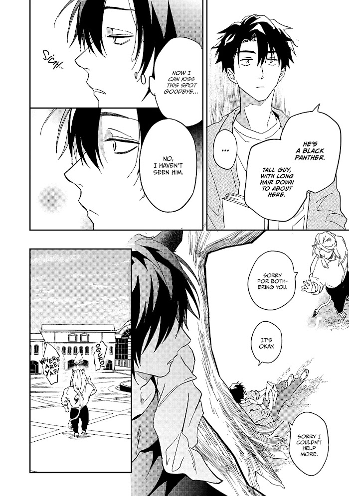 In a world where beastmen and humans coexist, Gaku attends a college that consists of mainly beastman, a rarity in the world. Despite being the subject of his study, he's still not had much close interaction with them... That is until a chance encounter under the tree with Rui. Rui's the resident troublemaker who just so happens to be a leopard beastman. Soon a casual favor quickly leads Gaku into catching the eye of real predator!
